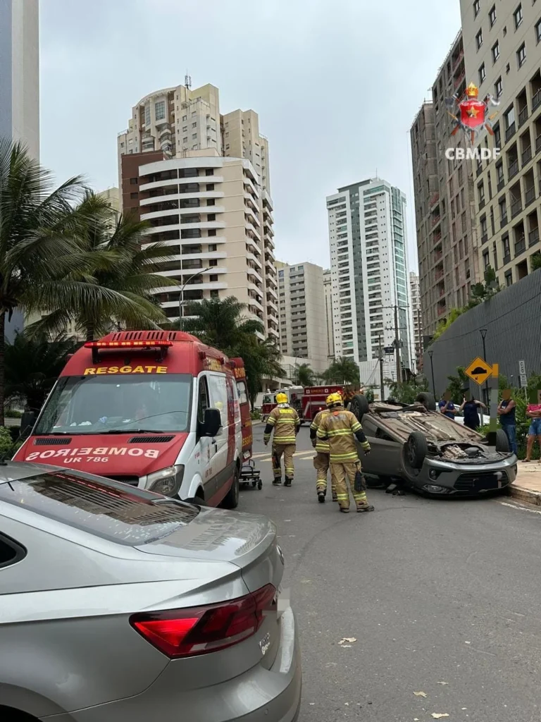 Capotamento em Águas Claras mobiliza bombeiros e deixa uma mulher ferida