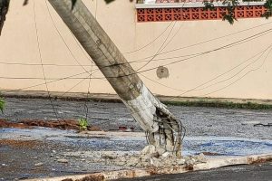 Motociclista colide com poste caído e precisa ser encaminhada ao Hospital de Base. Um motociclista de 40 anos ficou ferido na madrugada desta segunda-feira (22/9)