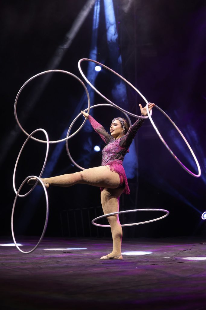 Entre os momentos mais aguardados está o Globo da Morte, conduzido por um piloto premiado internacionalmente e reconhecido por realizar a manobra histórica de looping em pé e sem as mãos — feito considerado único no mundo. Ao lado dele, a globista Raquel Brandão reforça a potência técnica do número, imprimindo precisão e protagonismo feminino a um dos atos mais radicais do circo.